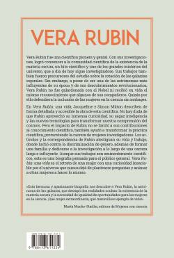 En Vera Rubin. Una vida, Jacqueline y Simon Mitton brindan una descripción detallada y accesible del trabajo de la científica. Esta biografía muestra cómo Rubin aprovechó su inmensa curiosidad, su sagaz inteligencia y las nuevas tecnologías disponibles para transformar nuestra comprensión del cosmos. Pero el impacto de Rubin no se limitó a sus contribuciones al conocimiento científico, también ayudó a transformar la práctica científica, promoviendo la carrera de mujeres investigadoras. No contenta con ser una inspiración, Rubin fue una mentora. Abogó por contratar profesoras femeninas, invitar a científicas a conferencias importantes y galardonar a mujeres con premios en ámbitos que históricamente eran competencia exclusiva de los hombres. Los artículos y la correspondencia de Rubin son un testimonio vívido de su vida y trabajo, donde luchó contra la discriminación de género, formó una familia y se dedicó a la investigación a lo largo de una carrera larga e influyente.