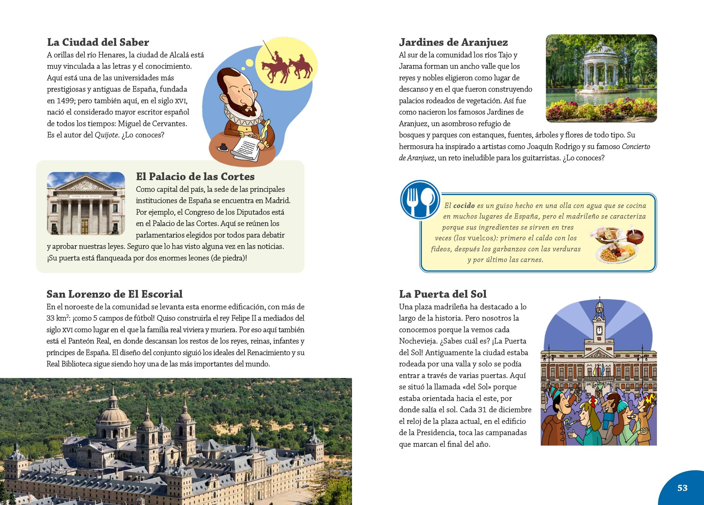 ¿Conoces las comunidades autónomas? ¿Y sus capitales? Si alguien te preguntara por la montaña mágica de Cataluña o por Finisterre, el lugar donde se acaba la tierra, ¿a dónde lo enviarías? ¿Sabes por qué los relojes canarios marcan una hora menos que los de la Península? ¿Y quiénes son los chulapos o los mangurrinos? Déjate guiar por estas páginas y descubrirás todo lo que esconde cada rincón de nuestra geografía: platos típicos, tradiciones, monumentos, paisajes ¡y mucho más!