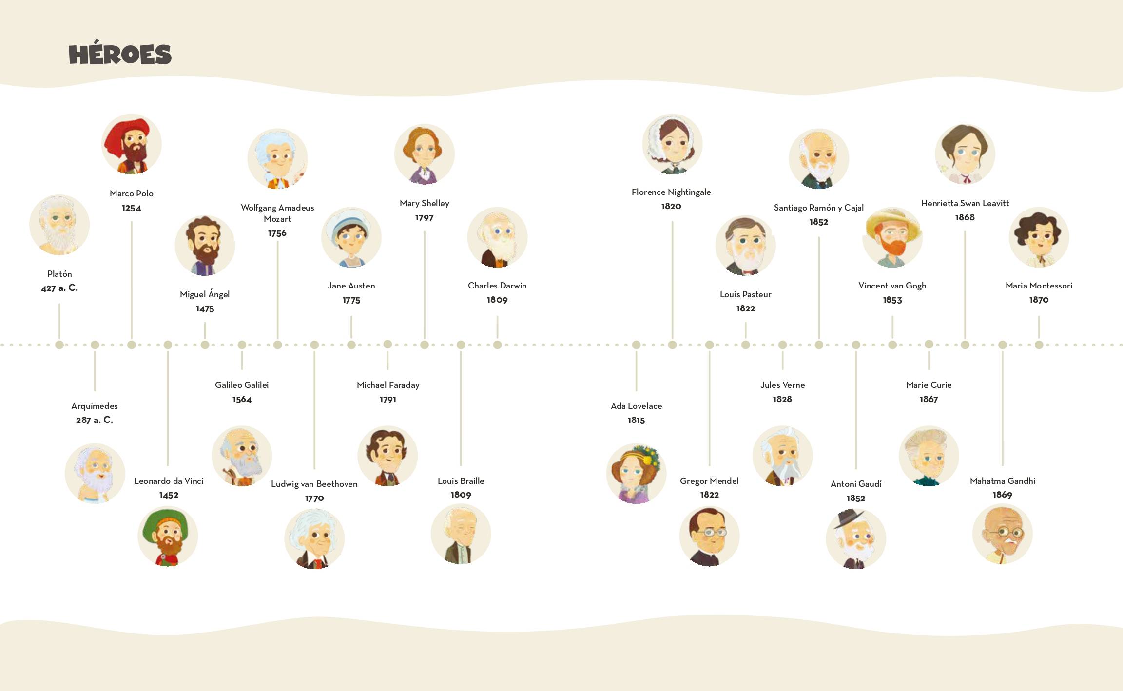 La mayoría de héroes que conocemos son seres extraordinarios con poderes mágicos y una capa ondeando en sus hombros. Pero también existen héroes de carne y hueso, tan humanos como tú y como yo, que algunas veces se equivocan y otras aciertan a lo grande. Con este libro, conocerás a 50 inspiradoras figuras que te dejarán boquiabierto: científicos, aventureros, inventores y artistas que han contribuido a hacer del mundo un lugar mejor. Porque, en la realidad, los héroes también existen.