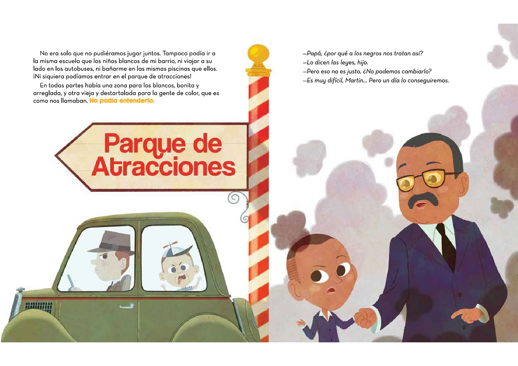 Ya desde pequeño Martin Luther King tenía claro cuál era su sueño más importante: quería que todas las personas tuvieran los mismos derechos, fuera cual fuese el color de su piel. Aunque parezca lógico, hay quien cree que las personas con un color de piel diferente al suyo son inferiores y merecen un trato peor. Martin Luther King dedicó toda su vida a hacer realidad su sueño y, aunque no fue nada fácil, al final lo consiguió con las mejores armas que existen: la palabra y la lucha no violenta.