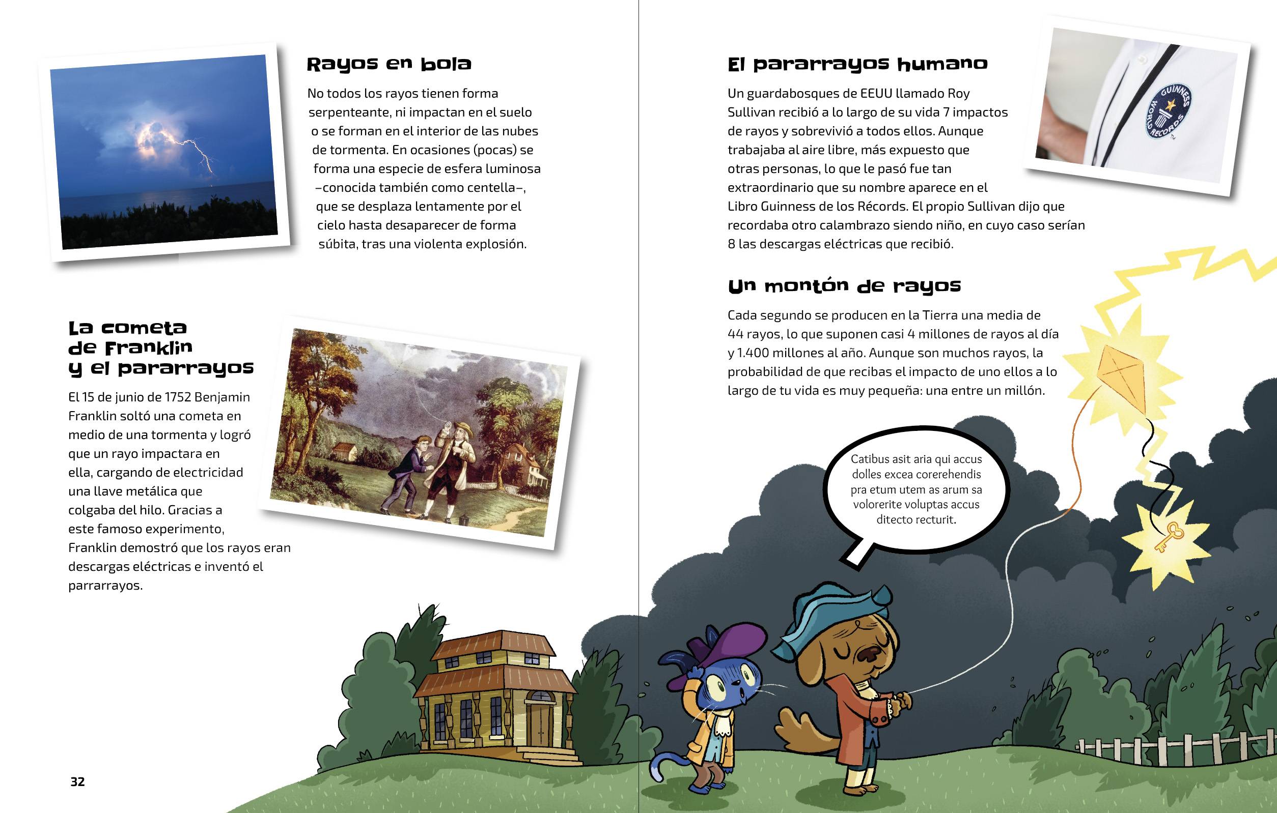 Cansados de ver las previsiones del tiempo sin entender nada, nuestros amigos Perro y Gato se mueren de ganas por descubrir todos los secretos de la meteorología y los fenómenos atmosféricos. ¿Cómo se forma un tornado? ¿Y el arcoíris? ¿Es verdad que a veces pueden llover ranas del cielo? ¿Dónde se esconde el agua de las nubes?